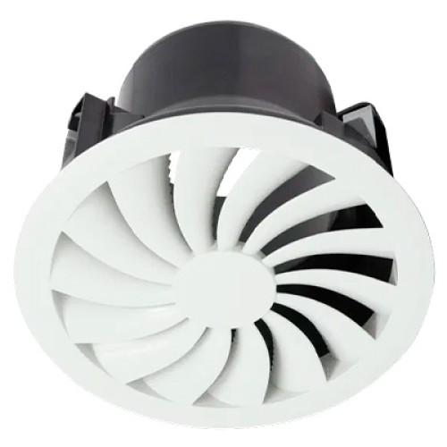 Ceiling swirl diffusers in air conditioning systems create a vortex supply of air for good mixing with the room air. The air flow obtained at the outlet of the diffuser allows one to achieve high ejection values, thereby quickly reducing the flow rate and leveling out the temperature difference between the supply air and the air in the room. Ceiling swirl diffusers are used for high air flows. As a result, there is a mixing of air flows in comfort zones, with a good distribution of air jets throughout the room and a small turbulent vortex in the area where people are present. Ceiling swirl diffusers of the AIRNAMIC series are made with fixed guide lamellas with a 3D profile. This creates a high air flow rate with a low sound power level. The temperature difference between the supply air and the room can vary from – 10 to +10 K. The damper blade for balancing the air flow simplifies operation. To create an attractive, holistic room design, AIRNAMIC series diffusers can also be used for exhaust ventilation. In this case there is no flow equalizer.