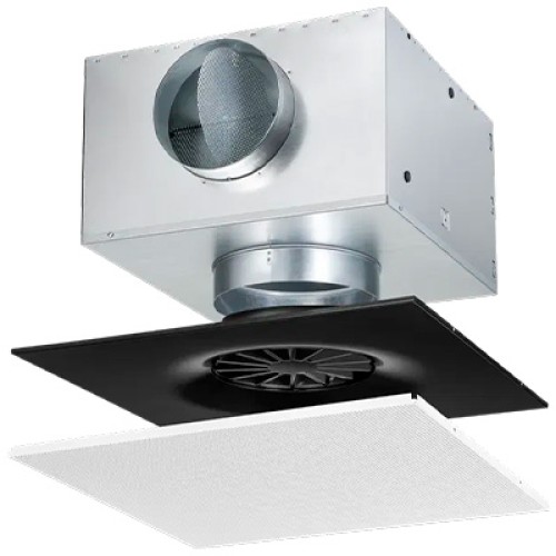 A diffuser mounted behind a suspended ceiling is completely invisible, making this solution attractive to architects and clients with high aesthetic requirements.