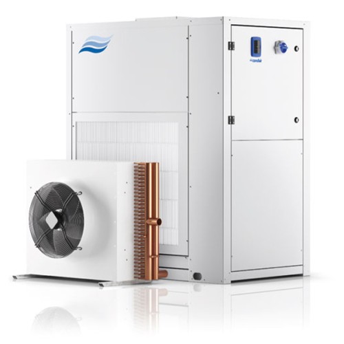 The product range includes models with dehumidification capacity from 263 to 940 liters per day (at +30 °C and 80%) and cooling capacity from 13 to 43 kW.