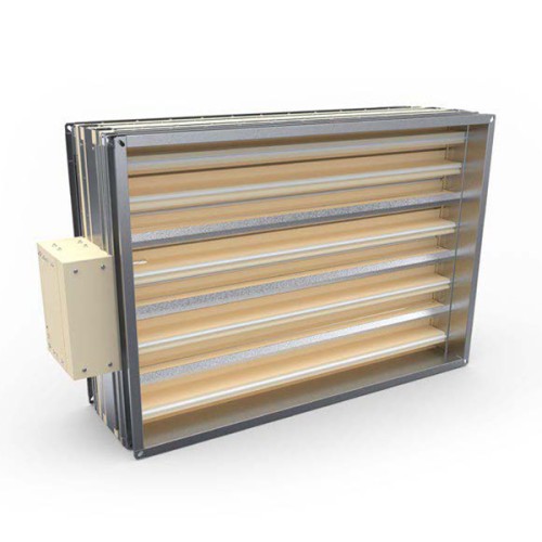 Multi-blade fire damper WKZ-O with increased fire resistance. Designed for use in general ventilation systems as a shut-off partition separating the fire zone from the rest of the building (normally open). The purpose of this damper is to prevent the spread of fire, heat and smoke.